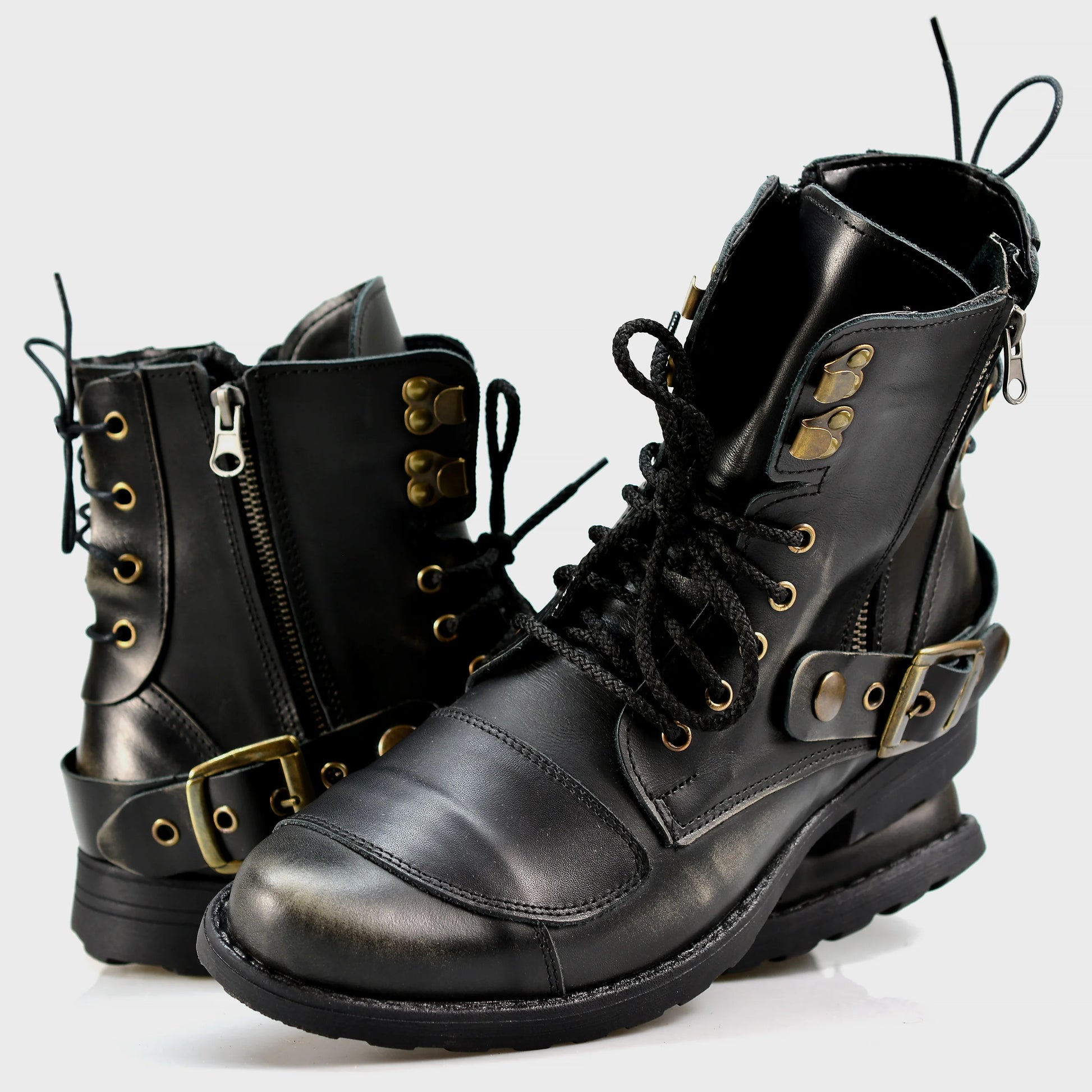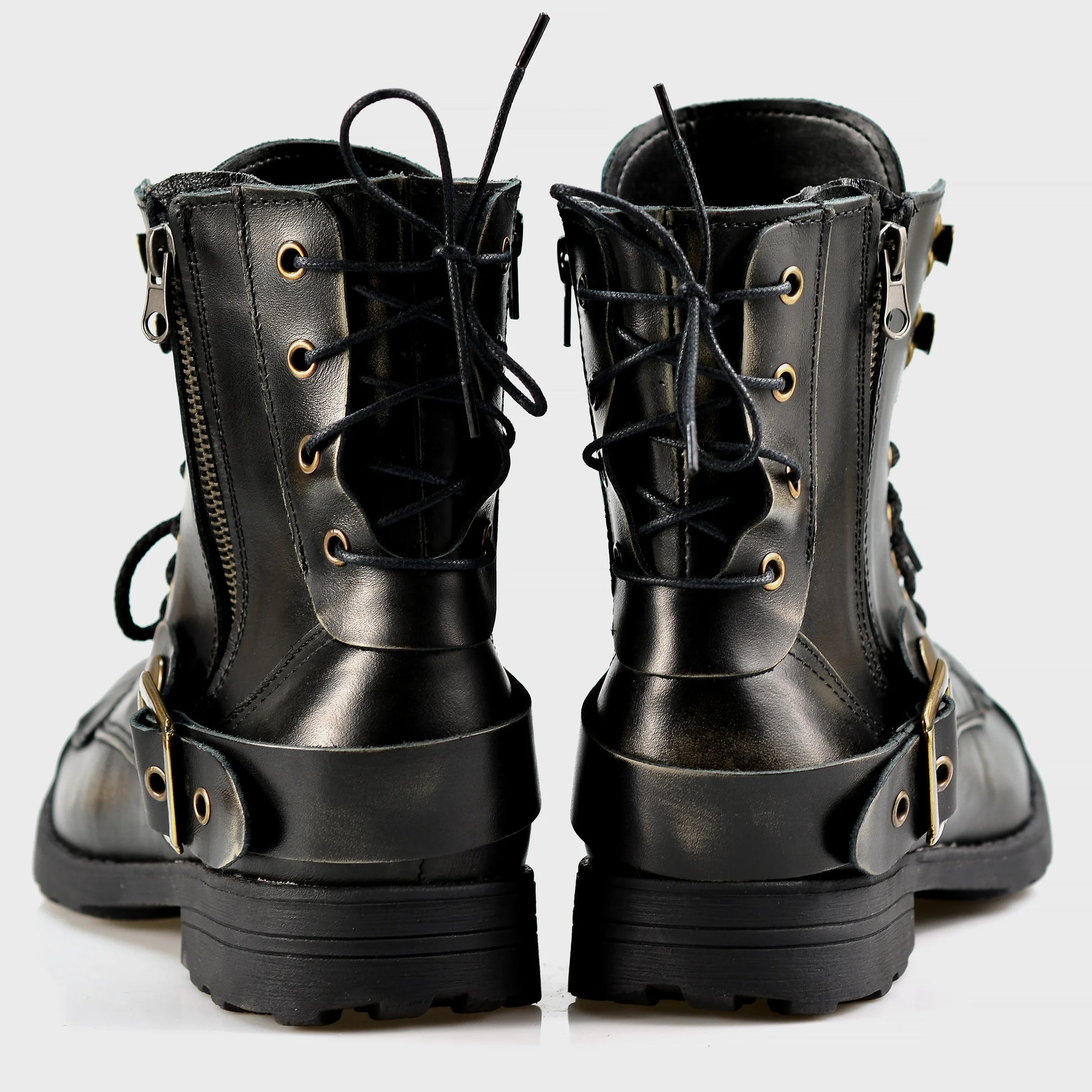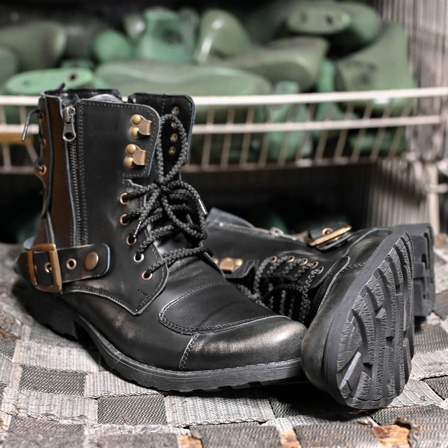 Handmade Black BS Leather Men’s Motorcycle Boots – Chad