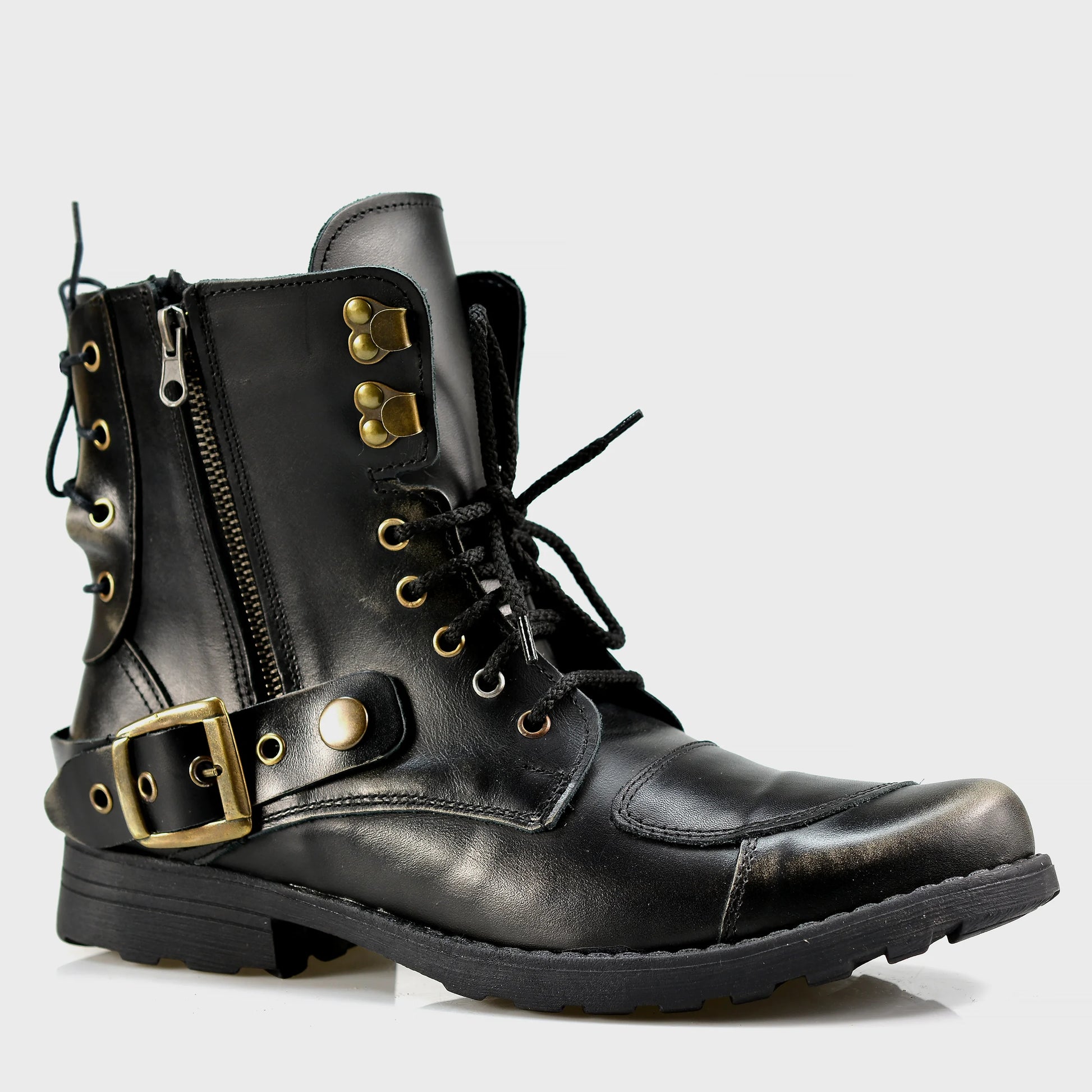 Black BS Leather Men’s Motorcycle Boots – Chad | KarolShoes