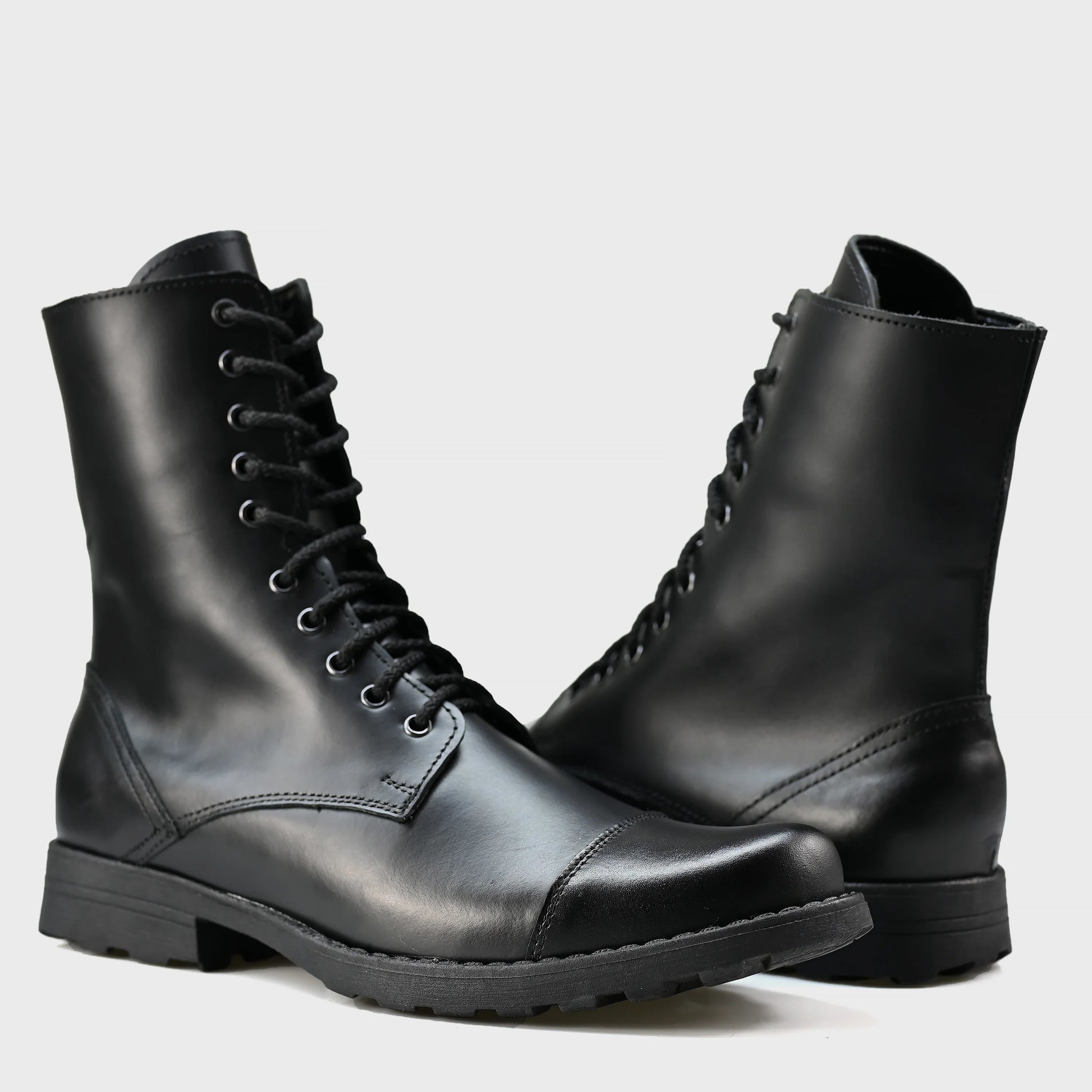 Pánské vysoké kožené boty Corvo – ručně šité černé třševíky | KarolShoes