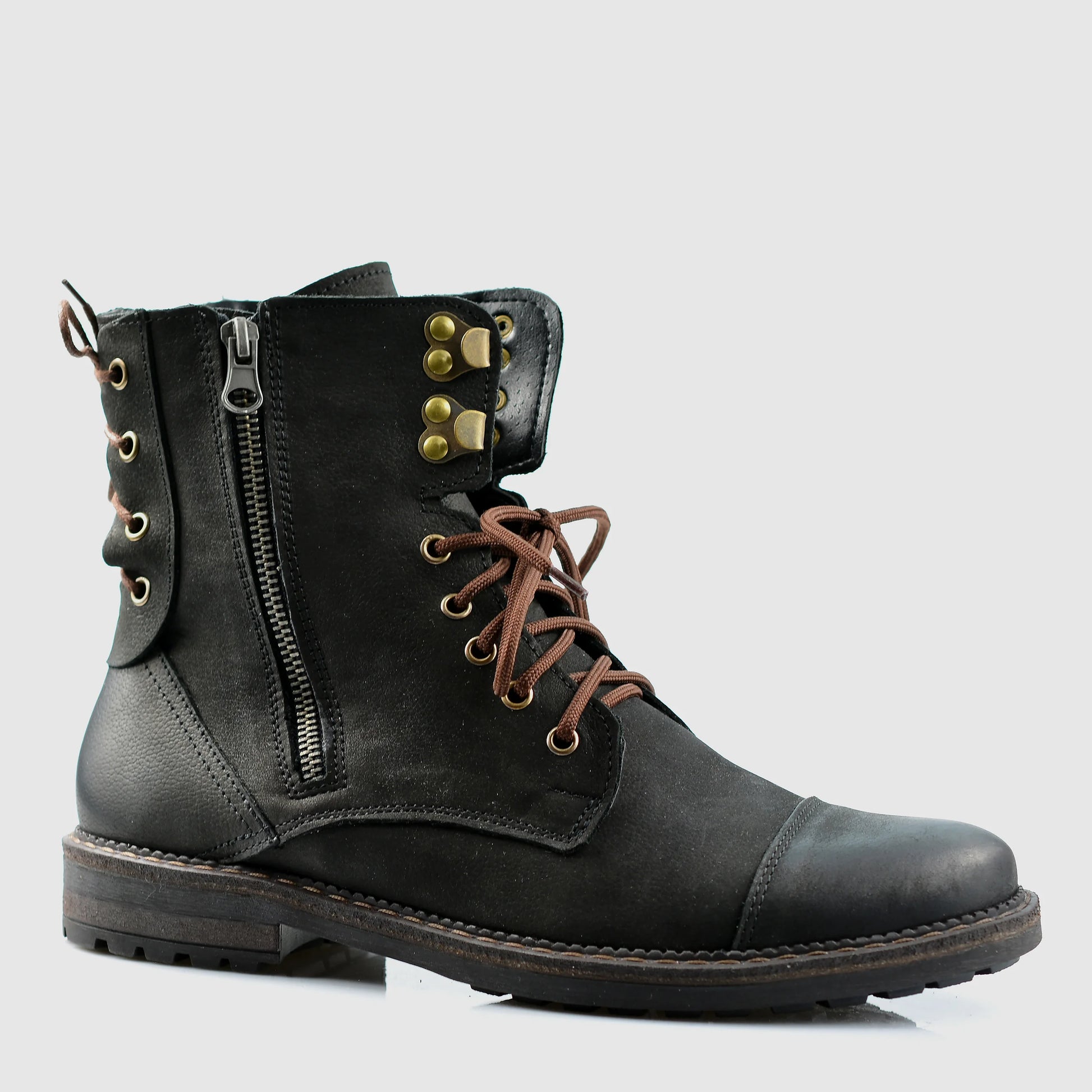 Model Marc je určen pro muže, kteří vyžadují výrazný design, odolnost a svobodu pohybu. Tyto vysoké kožené šněrovací boty spojují industriální a vojenskou estetiku s praktickými prvky – ideální pro město, víkend i terén.