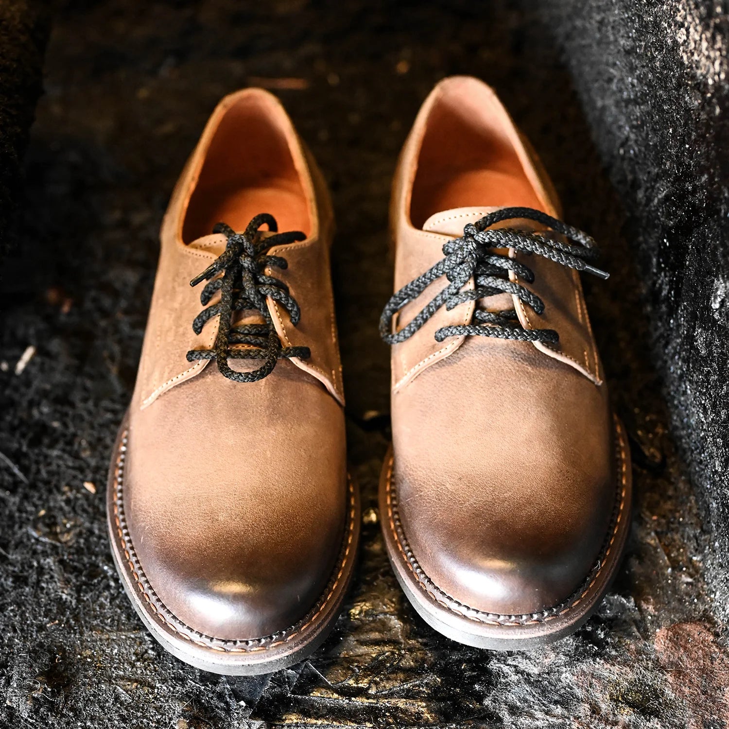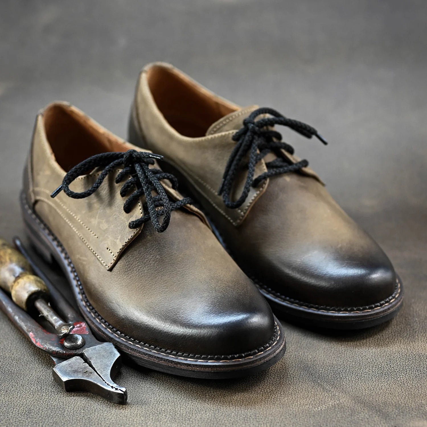 Veškerá obuv značky KarolShoes je vyrobena z přírodní hovězí kůže nejvyšší kvality, pocházející z prověřených evropských koželužen. Kůže je ručně barvená, kartáčovaná a vrstveně dokončovaná, což dodává každému páru jedinečný vzhled.